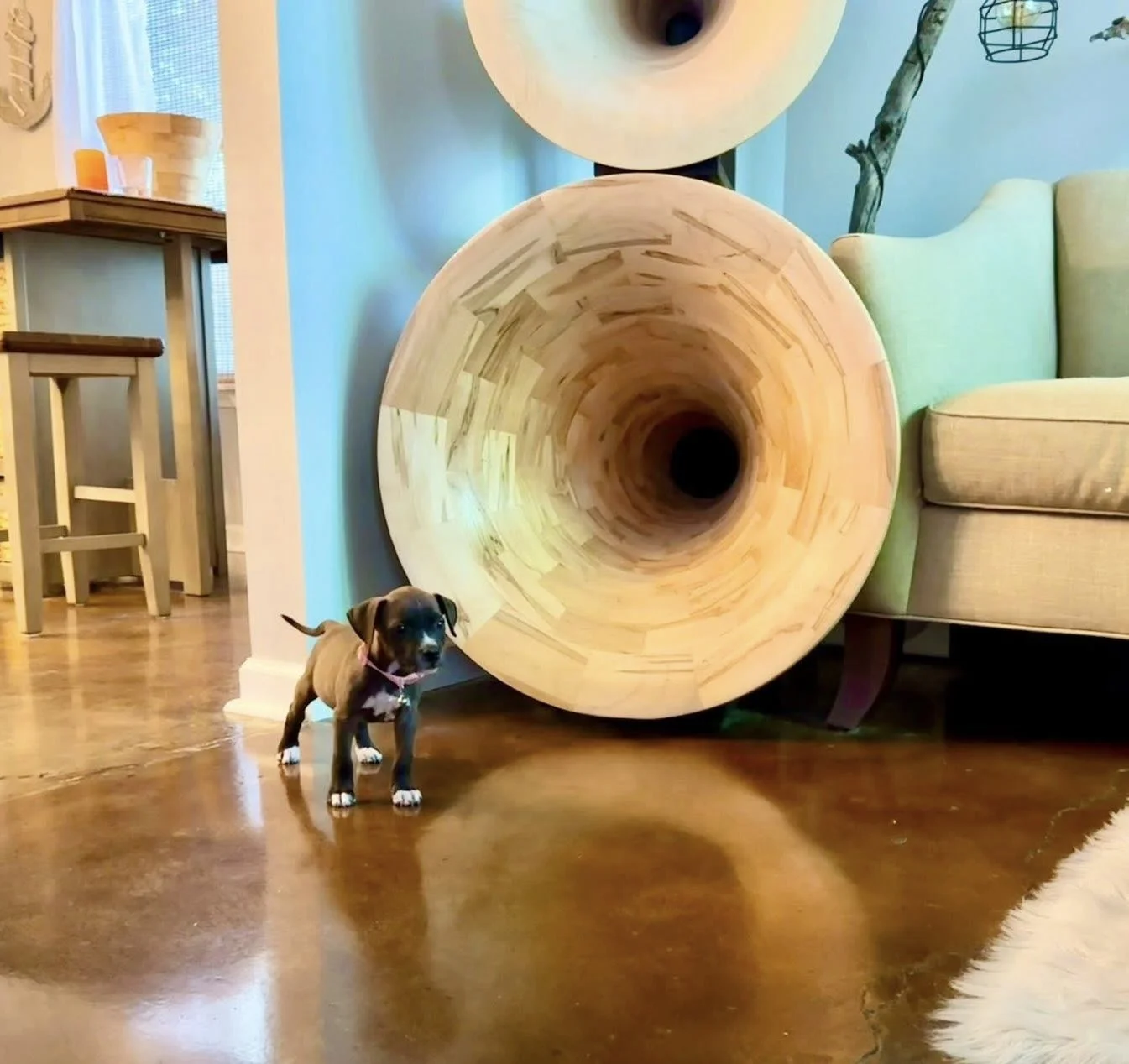 Welcome to my workshop in NE Florida, where I build hand-turned tractrix mid-bass horns. Each horn begins with rough cut lumber that is segmented into rings and shaped on a lathe into a perfectly smooth continuous curve. This round uninterrupted geometry isn’t just beautiful-it’s acoustically superior. Unlike horns made with flat panels and sharp angles, a true circular tractrix profile minimizes internal reflections, eliminates diffraction at corners, and preserves a uniform wavefront as sound expands outward. The result is a cleaner transient response, lower coloration, and a more natural effortless presentation in the critical mid-bass region. These horns are crafted to let music breathe-exact, organic and uncompromised.